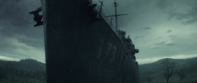 我們可以看到一台編號 U.S.S. Elridge (D.E. 173) 的驅逐艦忽然被裁剪過來,船艦上的水手們不曉得自己身在虛無之地,對艾里奧斯一陣砲火攻擊,當然最終就被吞噬了。而從1955年開始,關於這台驅逐艦的各種都市傳說就云云不斷,有UFO研究員聲稱自己目睹驅逐艦進到另一個維度,遇上外星人綁架。更有傳說再度把帽子扣在美國政府頭上,說當年美國海軍藉本戰艦進行隱形實驗,而這些水手回家後不是重病就是死亡了。