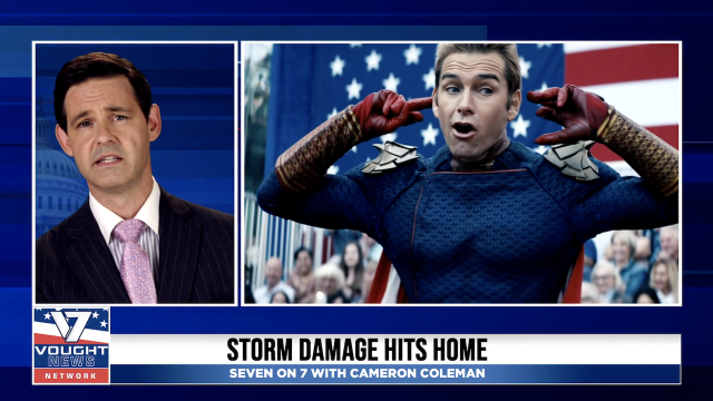 「從《黑袍糾察隊》的開始,我們就看到了沃特企業的宣傳部門——我是說,新聞頻道 VNN 出現。我們也預計會在第三季更深入了解那些所謂公平公正的愛國英雄們,所以作為預告,我們將介紹 VNN 最受歡迎的節目:卡梅隆科爾曼的《Seven on 7》。這個頻道是跟影集同在一個宇宙裡的,更會提供全新資訊,讓觀眾可以填補二、三季之間的空白。因此,請像你的父母一樣,享受各種即時新聞與導尿管廣告吧!」