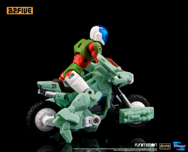 以 1/28 比例「B2Five」品牌廣為人知的香港玩具廠商 Beaver,發表了新的《機甲創世紀》系列的機體可動玩具,本次即將於 2022 年 3 月一次推出三款商品,是在劇中名為「霹靂車」(アーマーサイクル)的可變形輕型裝甲「VR-041H」、「VR-052T」和「VR-052F」。