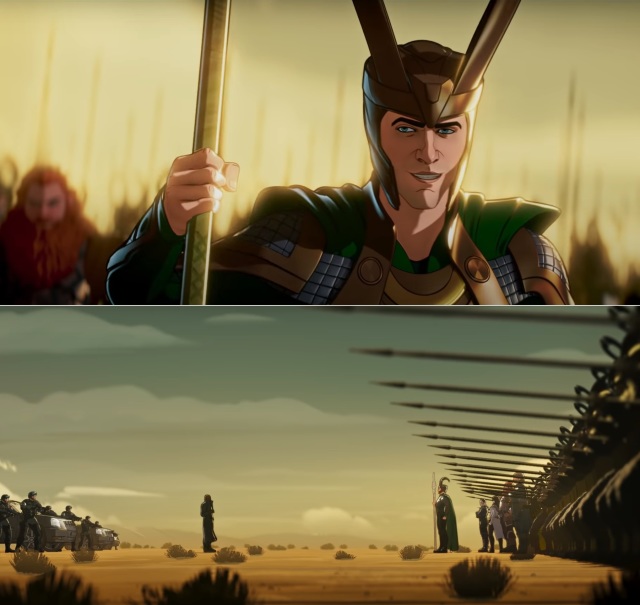 如果《雷神索爾1》中的索爾不知悔改,會發生什麼蝴蝶效應?當然就是洛基會成功將奧丁致死,然後篡位為阿斯嘉的國王!這時洛基不需要跟薩諾斯交易,就能直接帶領整個阿斯嘉軍隊,展開征戰九界的計畫,於是地球的尼克福瑞與神盾局部隊就此出動了。當然,在上周的《洛基》第五集有分析到,還有一個稱王的洛基尚未登場,或許就會跟這集有所連繫了?