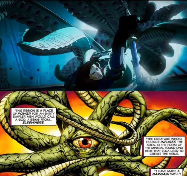佩姬卡特手拿「王者之劍」對上一團類似章魚的怪獸,據外媒觀察這個怪獸名為「眼魔」(Shuma Gorath) ,是《奇異博士》漫畫系列最大反派之一。是宇宙中最強大的存在之一,能夠穿越不同時空、宇宙。它相繼附身在古一法師、奇異博士身上,迫使他們自我毀滅。據外媒報導,會是《奇異博士2》最主要的威脅。