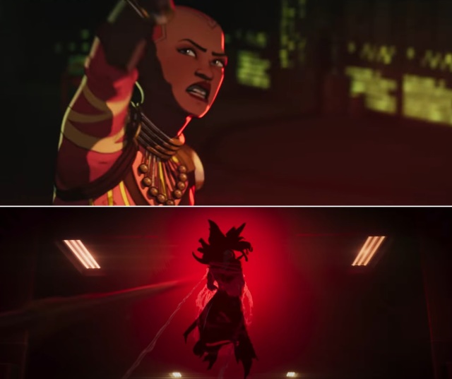 這幕我們可以看到奧科耶向緋紅女巫扔出了長矛,緋紅女巫則被蜘蛛人的蜘蛛絲綑綁住,最後用了自己的魔法掙脫。如果這正是MCU主宇宙剛獲得「緋紅女巫」力量的汪達,那很明顯她現在的能力已經影響到整個多元宇宙,迫使「多元宇宙護衛隊」必須集結。