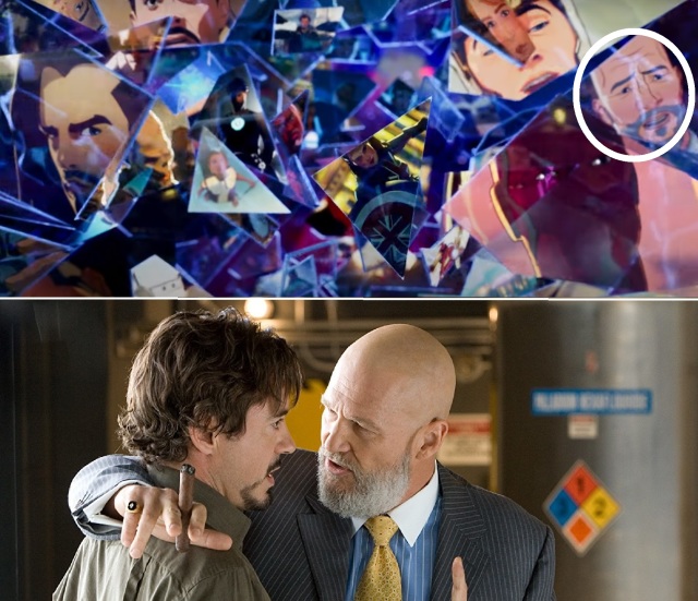 預告最後有許多多元宇宙的稜鏡反射,其中一個正是《鋼鐵人1》的反派「鐵霸王」奧比坦的回歸。由於預告開場就是《鋼鐵人1》劇情的另一個假設,因此他的回歸是合情合理的。