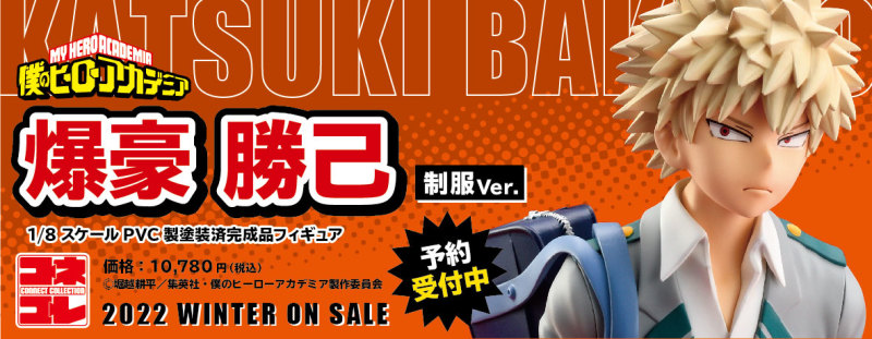 日本 BellFine 公司(株式会社ベルファイン)旗下以底座連結、完整展現作品世界觀的 Connect Collection(コネコレ)系列,在人氣動漫《我的英雄學院》為題材的蛙吹梅雨等作品後,穿著制服上學去的系列新作將推出「爆豪勝己 制服Ver.」1/8 比例 PVC 塗裝完成品,參考售價為 10,780 日圓,預計將於 2022 年 01 月發售。