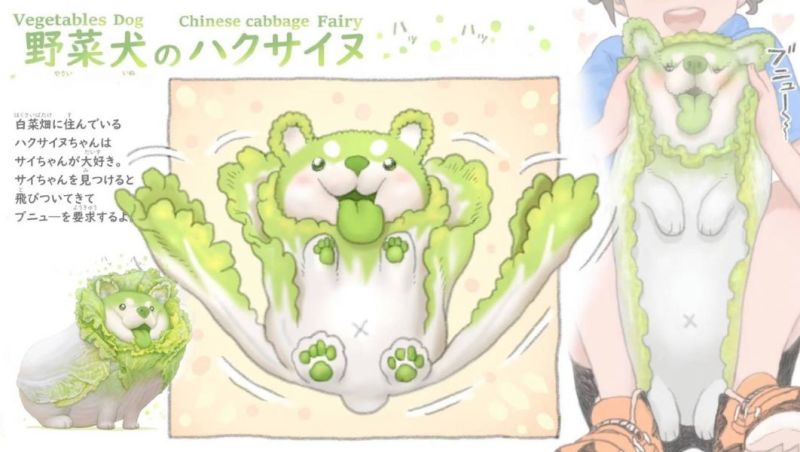 日本繪師 ぽん吉(@PonkichiM)發揮天馬行空的想像力,把動物與蔬菜水果做結合,創造出可愛又趣味的新物種-野菜動物妖精(野菜の妖精),軟萌的模樣相當討喜,包含大人氣的「白菜柴」、「大根狐狸」、「野菜蛙」等,讓不喜歡吃蔬果的小朋友都忍不住被征服~更是人氣推出轉蛋化、圖鑑、盲盒公仔等周邊商品~