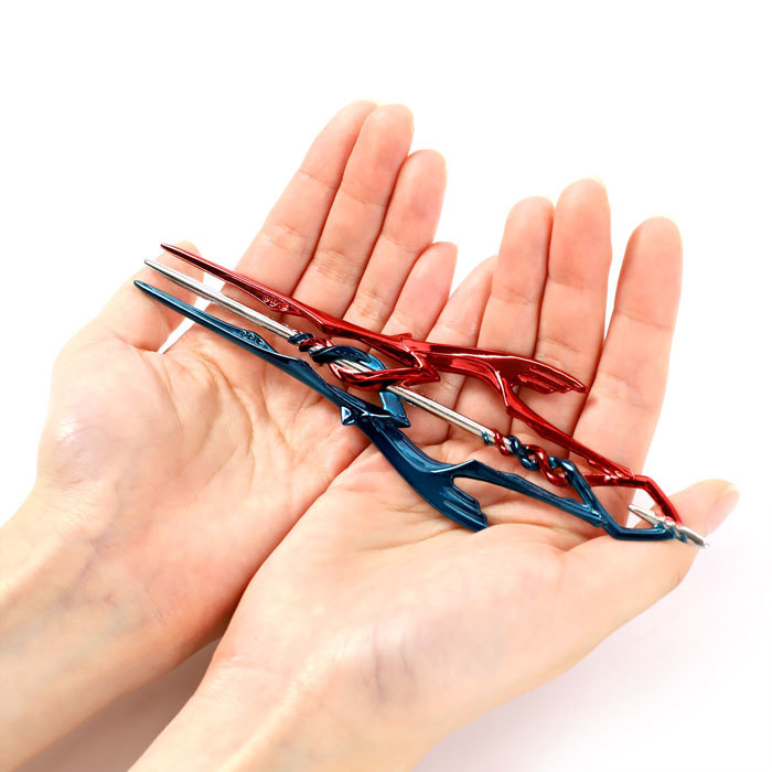 於最終章《新.福音戰士劇場版》出現的第三把槍「蓋烏斯之槍(ガイウスの槍)」,這次以金屬材質再現!「蓋烏斯之槍」金屬製擺件尺寸約長 18 公分,採用份量感的金屬製作,精緻還原蓋烏斯之槍複雜的雙螺旋造型與細節型與金屬紅、金屬藍交錯的色彩,除了重厚感之外也別具高級質感。