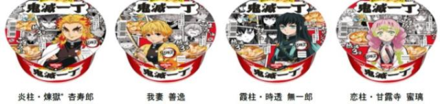 「鬼滅一丁」口味共四種,包含炎柱.煉獄杏壽郎、我妻善逸、霞柱.時透無一郎、戀柱.甘露寺蜜璃。