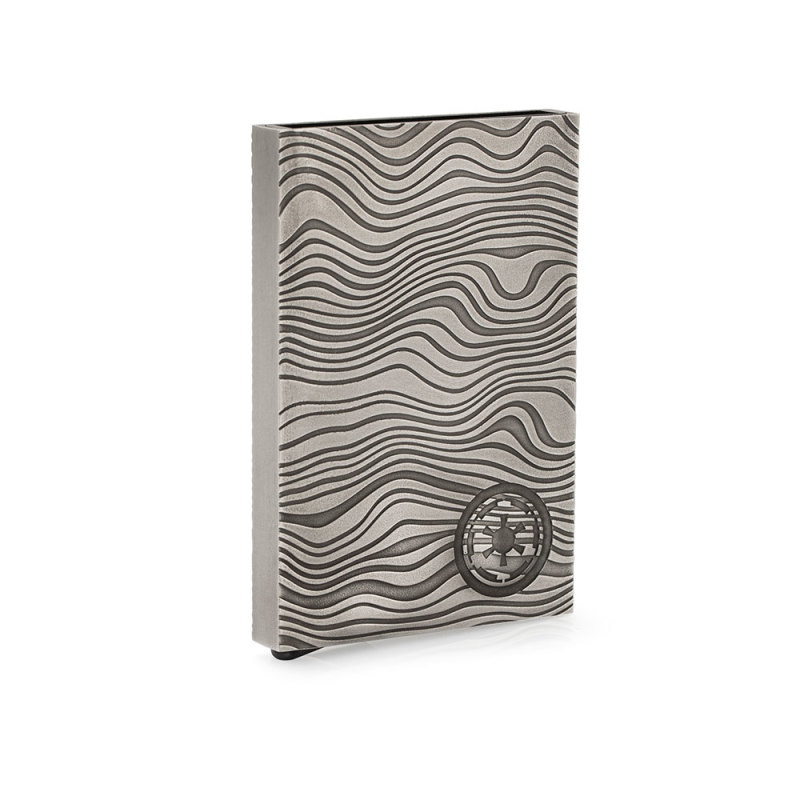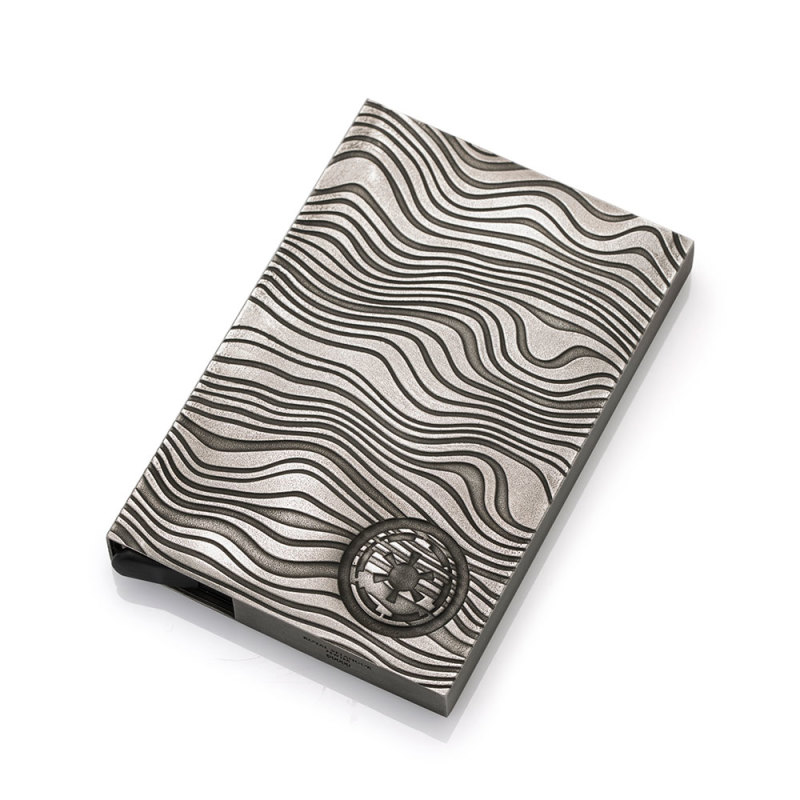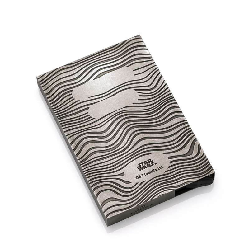 在星際大戰的世界觀中,堅硬的「貝斯卡鋼」也被稱為「曼達洛鐵(Mandalorian Iron)」,不僅可以用來鍛造盔甲、武器,還是保值性相當高的通用貨幣;這次 Royal Selangor 是以《曼達洛人》中、錠(Ingot)狀貝斯卡鋼的造型為題,打造出具備信用卡夾功能的合金商品,本作長度約 9.5 公分,可以放入最多 7 張的信用卡,正面還原了波浪狀紋理與銀河帝國的標誌,背面則有 STAR WARS 的字樣,整個讓人很心動吶!