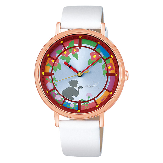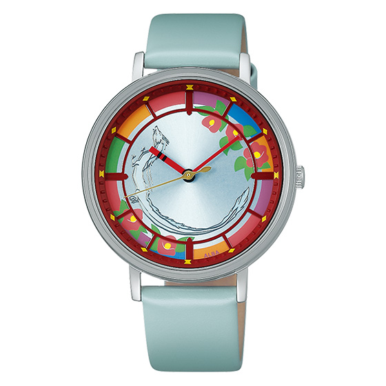 以白龍在澡堂「油屋」開店前與千尋在花圃的經典場景設計,以白龍吹拂的剪影為圖案,搭配錶面四周的花朵圖騰,真的非常唯美~