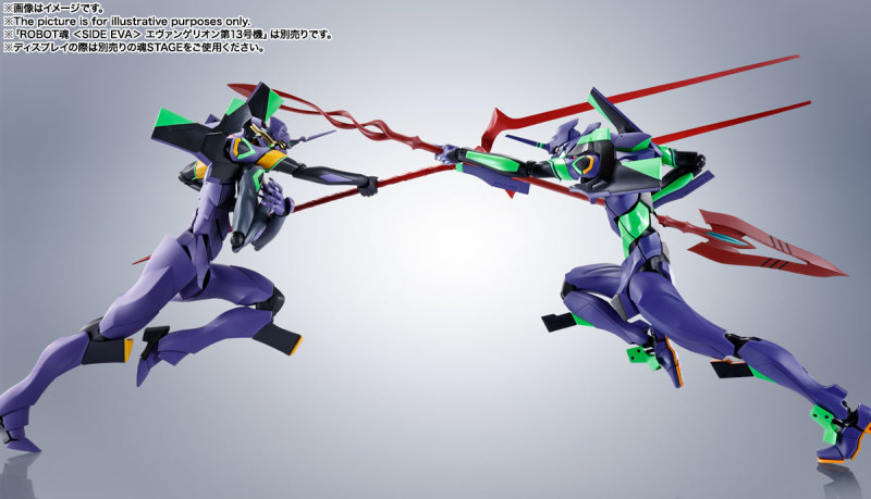 由日本 BANDAI SPIRITS 公司收藏玩具事業部 TAMASHII NATIONS 發行的機人主題可動完成品『ROBOT魂』系列今日同步發表兩款《福音戰士新劇場版》新商品「福音戰士 EVA初號機+卡西烏斯之槍(新色彩版)」、「EVA 第13號機」分別將於 2021 年 11、12 月發售的消息。