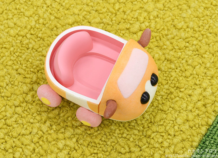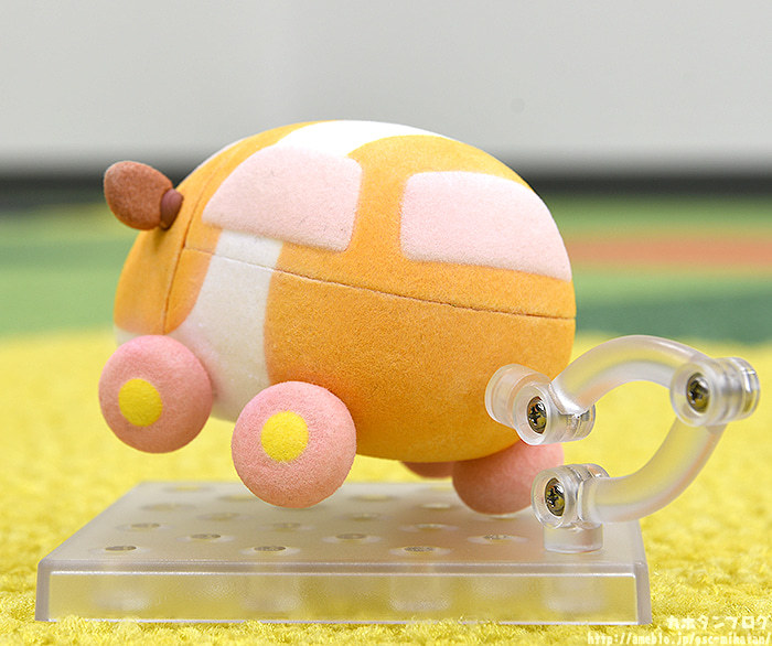 「黏土人 馬鈴薯」忠實再現羊毛氈戲偶的造型比例,體表更使用靜電植毛加工,製作出毛茸茸的觸感,呈現天竺鼠車車的可愛之處,四顆輪子、兩側後照鏡都有可動關節。配件中附有馬鈴薯最愛的食物「紅蘿蔔」以及「普通臉」、「驚嚇臉」、「哭哭臉」三種表情可替換。