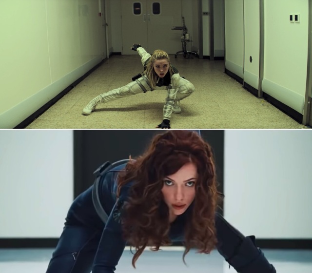 片中葉琳娜也嘲諷了娜塔莎自《鋼鐵人2》初登場時就經常出現的落地姿勢,在最後決戰時她也用同一個姿勢跳下來,還說了一聲:真噁心。不過葉琳娜未來將會在MCU繼續登場,也算是一種傳承意味了~