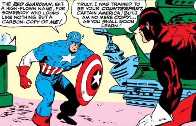 片中被關押的「紅色衛兵」阿列克謝聲稱自己曾與「美國隊長」交手過,當然因為他出道時史帝夫還在冰凍中,所以根本沒人相信他。儘管如此,他甚至堅持地問娜塔莎有沒有從史蒂夫那裡聽過他。有趣的是我們知道「超級士兵」其實在二戰過後還是多次被秘密地實驗,包括《無敵浩克》中創造出了浩克,以及《獵鷹與酷寒戰士》提到的黑人美國隊長實驗等。可以確定的是,「紅色衛兵」和「美國隊長」確實在漫畫交手過。