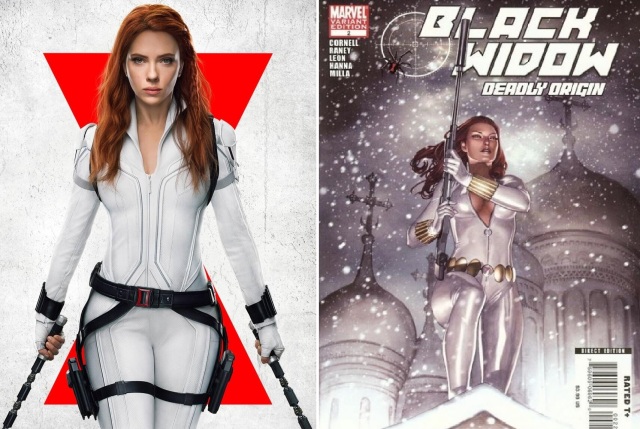 本片中娜塔莎首次穿上白色系服裝,也象徵完全拋開過去黑暗的過往。而這身白色服裝源自於2010年的漫畫《Black Widow Deadly Origin》該漫畫講述黑寡婦、酷寒戰士、紅色衛兵聯合執行任務的回憶。