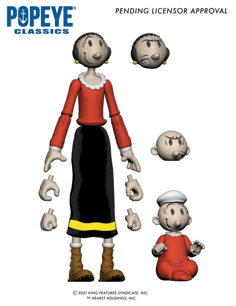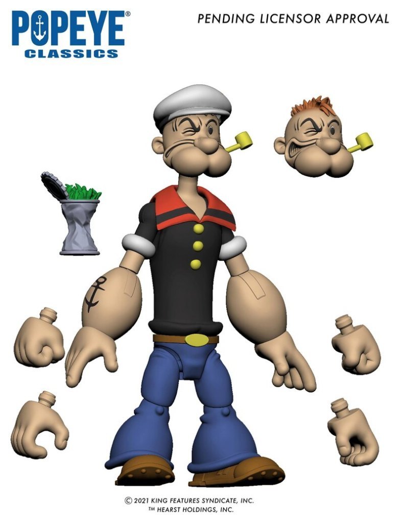 以希臘神話主題 Vitruvian H.A.C.K.S. 原創人偶所知名的歐美玩具品牌 Boss Fight Studio(BFS),這次攜手美國經典懷舊卡通《大力水手》,推出「POPEYE CLASSICS」系列 1/12 比例可動人偶,一共四款,每款參考售價為 $34.99 美元,預計於 2021 年第四季發售。