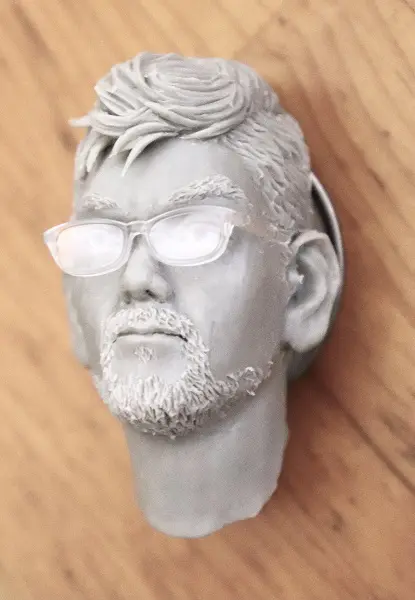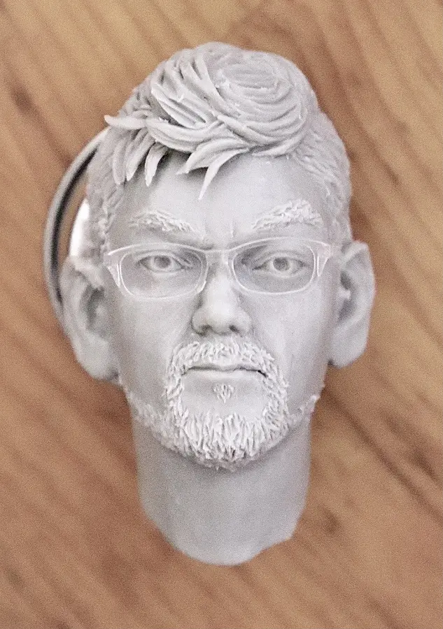 原先就有想製作《新世紀福音戰士》的人物打算,不過某日看到 《新·福音戰士劇場版:│▌》的導演庵野先生在電影上映後的登台致謝畫面,改為決定製作他的頭雕像,剛好最近《新·福音戰士劇場版:│▌》宣布電影票房突破百億,也同步在個人推特上發布自己的完成品。