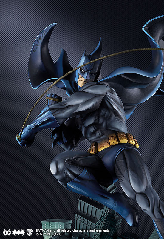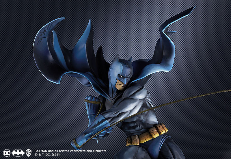 「Art Respect: 蝙蝠俠」1/6比例模型,尺寸高約 43 公分,將 DC 官方插畫師特別繪製的插畫以 Polystone 等素材徹底立體化!將蝙蝠俠躍身而出的動感姿態生動打造,在身體的美感、肌肉線條與飄揚的斗篷細節上都做得相當到位,營造十足躍動感;整體施以漫畫風格的細密塗裝,強烈的光線對比與筆觸線條,展現在月光及夜晚燈光之下,形體格外立體的獨特造型。另外,以高譚市夜景為底座,變形的遠近法,還原插畫的特色的視覺效果!極具魅力~