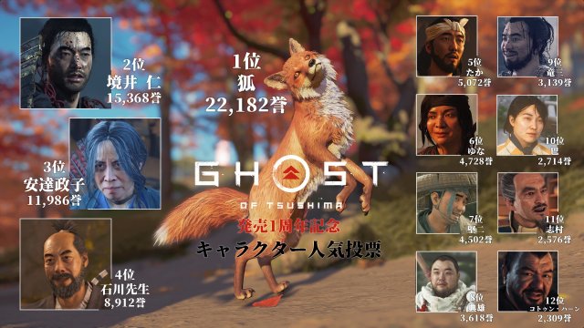於2020年7月由索尼互動娛樂發行的PS4動作冒險遊戲《對馬戰鬼》,至今也已經正式進入一周年的時間了,官方為慶祝周年活動,於日前特別舉辦了角色人氣票選活動,還供支持該款大作的玩家們,為自己所喜愛的角色投下神聖的一票。