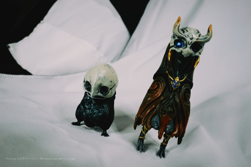這次想和大家分享的是這個我本人滿推的轉蛋ー紡ギ箱。這個是由一個造型師YOSHI.出的轉蛋。基本一期6隻3種(裁人、布敦 、智人)造型兩種配色,這次的是普通色和全灰色的。