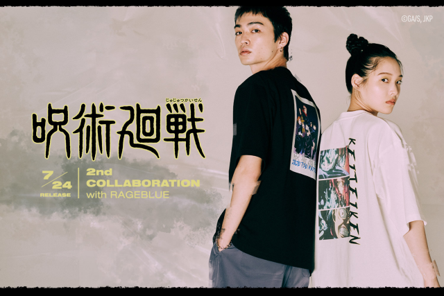 日本漫畫家芥見下下的漫畫作品《咒術迴戰》,為 2018 年開始在《週刊少年JUMP》連載,目前將於年底上映首部劇場版。今年年初就與日本服飾品牌RAGEBLUE 展開合作,推出一系列服飾商品。近日宣布將推出第 2 彈企劃,比起先前的服飾外更多了一些周邊商品發行,將於 2021 年 7 月 24 日開賣。