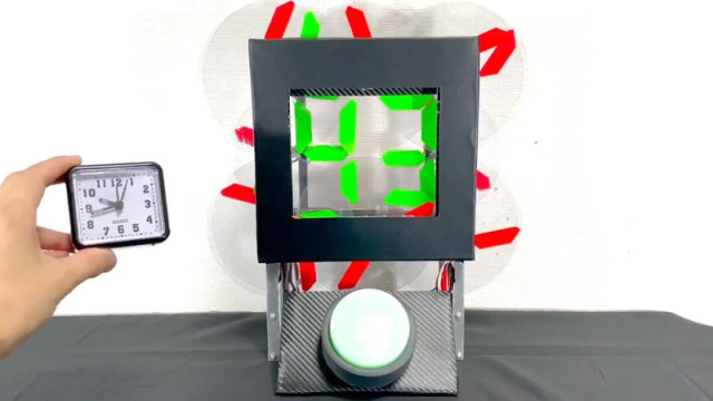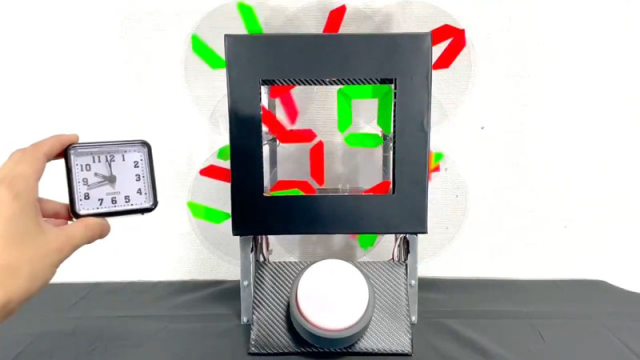 一位日本推主BBコリー(@BitBlt_Korry)製作了一個類似電子鐘的時鐘,不過面板是利用14片圓盤讓表示數字的塑膠片移動,紅色代表秒,綠色代表時、分,秒數變換基本和一般時鐘相同,當過了一分鐘後圓盤會將紅色秒數變換成顯示目前時間的綠色時數與分數,也因為變換期間會占用到秒數,所以換回紅色秒數時並非從0開始。