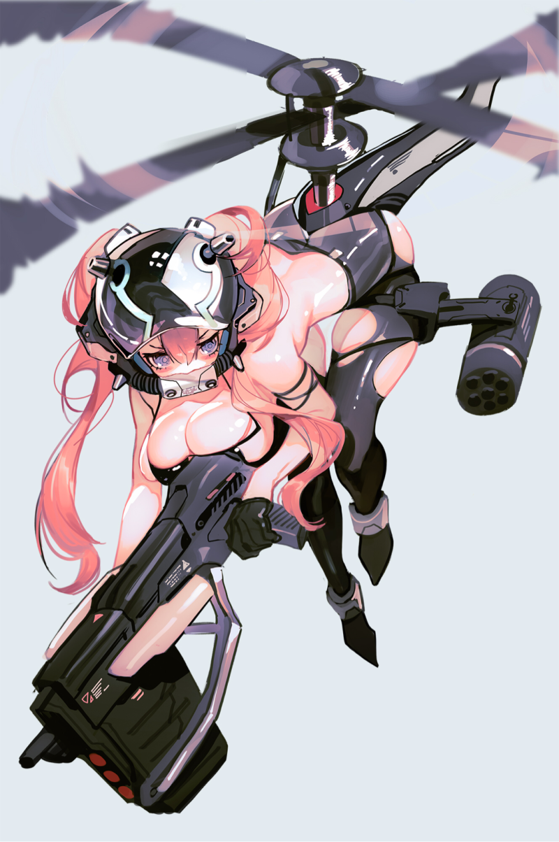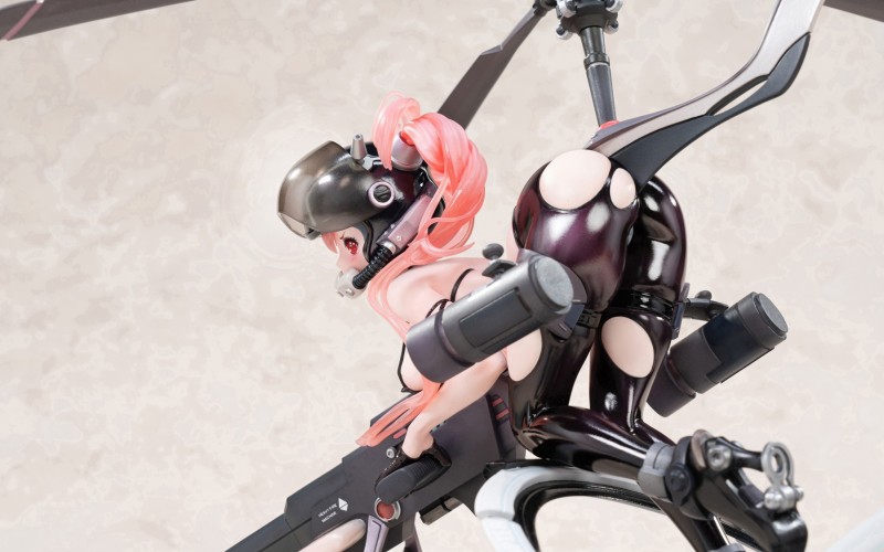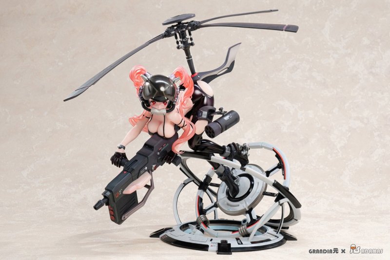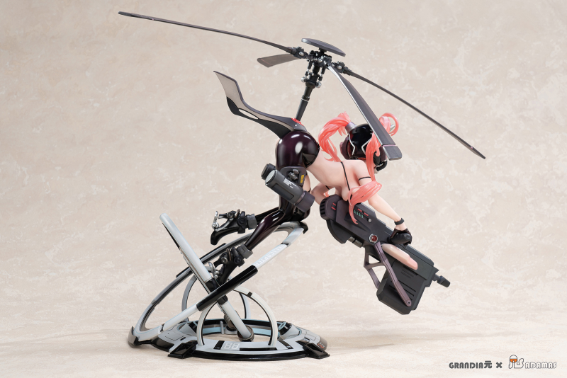 Jis studio「少女機」1/7比例模型,原畫由繪師、bilibili知名 UP 主 Grandia元(@grandia42783429)所繪,身材姣好的粉色雙馬尾少女加上直升機般的機械裝置與槍械,除了帶有未來科技感之外還相當性感迷人!大膽的穿著露出雙峰,因擠壓而變形、陷入的細節刻畫增添了柔軟的感覺;臀部的旋翼裝置也讓姿勢更加有前凸後翹的魅力,破洞的貼身皮褲讓白皙的膚色顯現出細嫩的質感;卸下臉部的裝置後,閃亮大眼搭配嬌蠻的噘嘴表情超級可愛~令人相當期待正式販售的完成品!