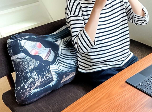 造型設計上印著達達非常經典的姿勢模樣,以全版印刷的方式呈現在抱枕上面,不過背面只印有《超人力霸王》的 Logo 就稍嫌單調了點。全長約 120 公分,極大的尺寸可以放在房間或是客廳,讓達達陪你生活 XD。