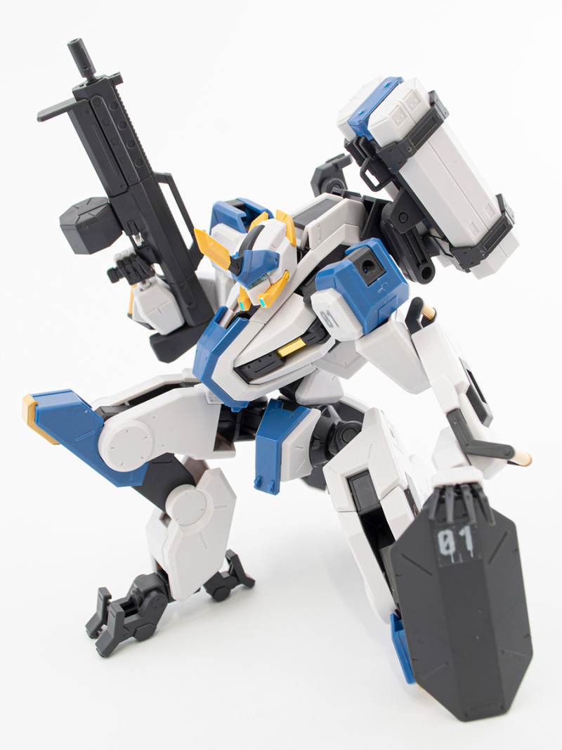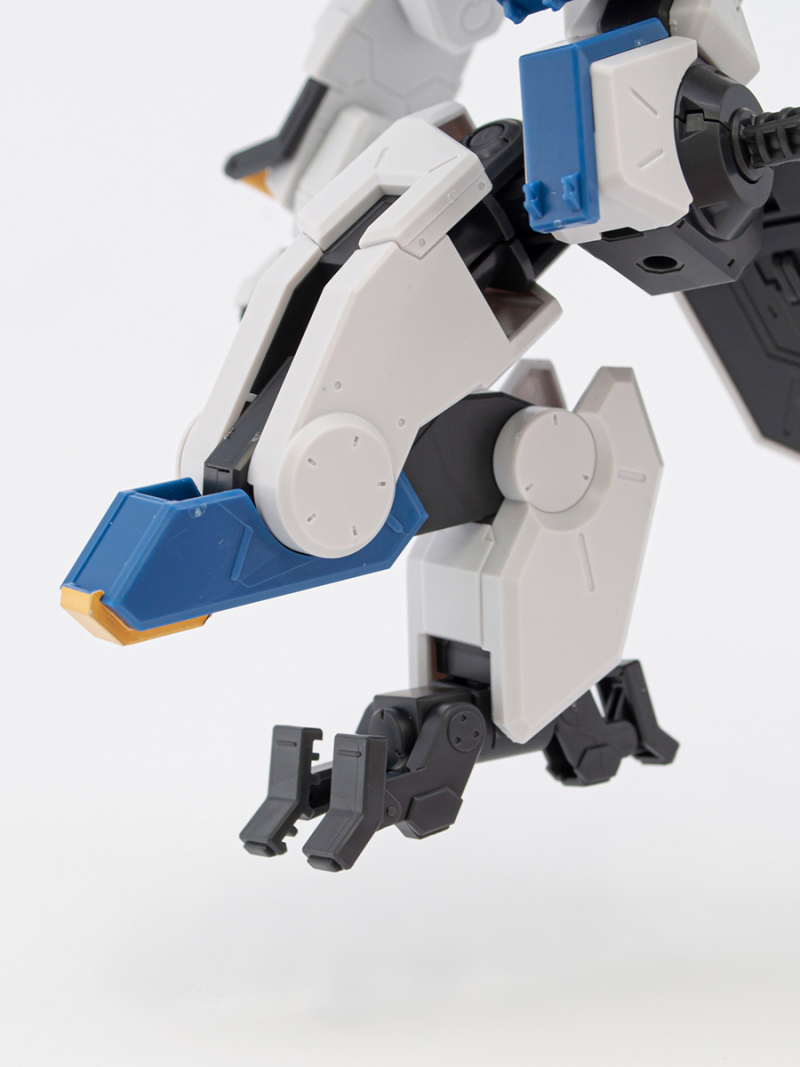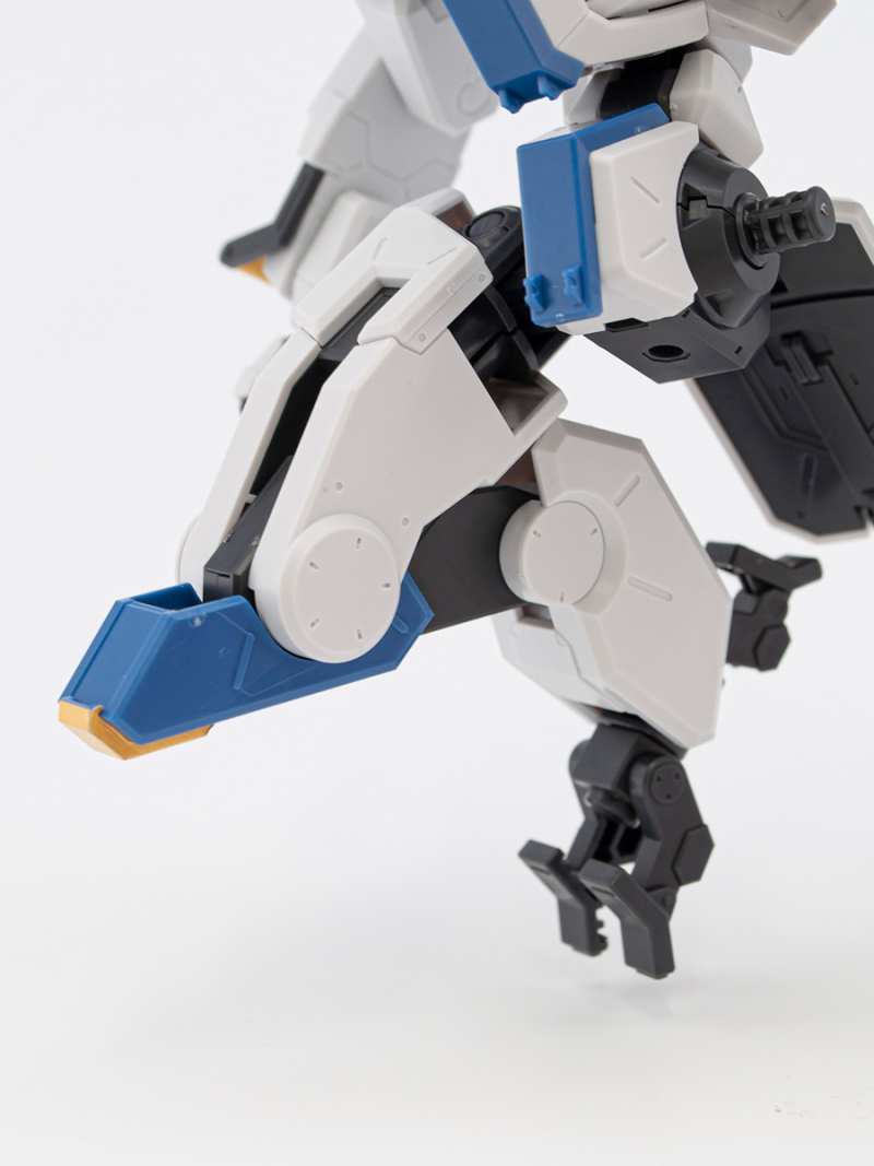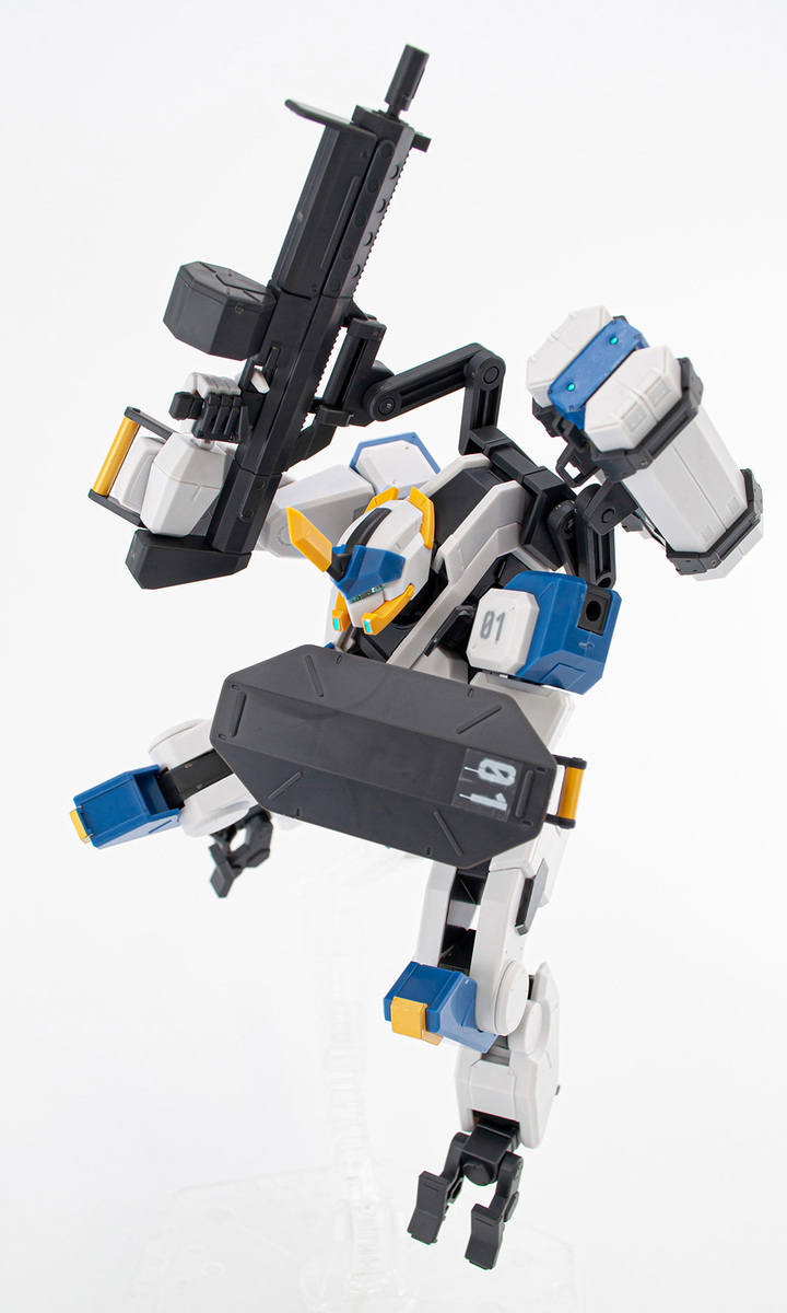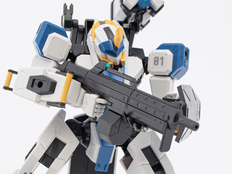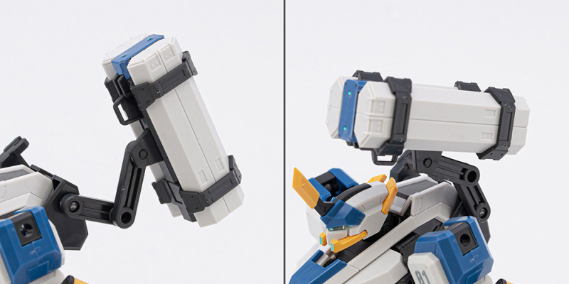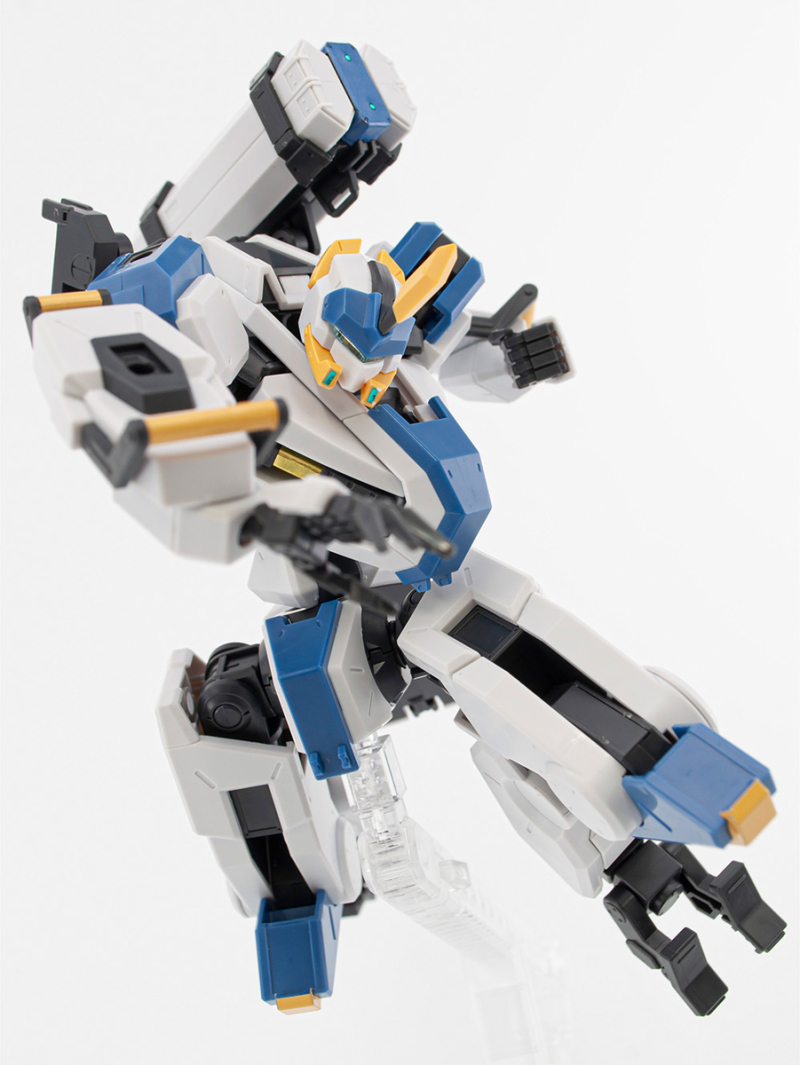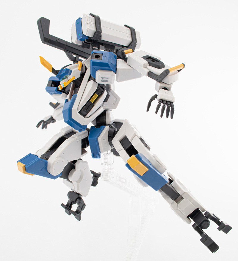 「HG 1/72 MAILeS 白雉」套件由設計團隊 KEN OKUYAMA DESIGN 驗證可動機構,將劇中獨特的關節造型立體化,不只再現背部獨特的武裝掛架,也收錄了豐富的武裝配件,包含 60mm 攜帶型機關砲(多彈艙型)×1、四連裝導弾發射器×1、泛用攜型盾×1等,可藉由背部掛架與全身各處的硬點卡榫,自由替換、擴充武裝。