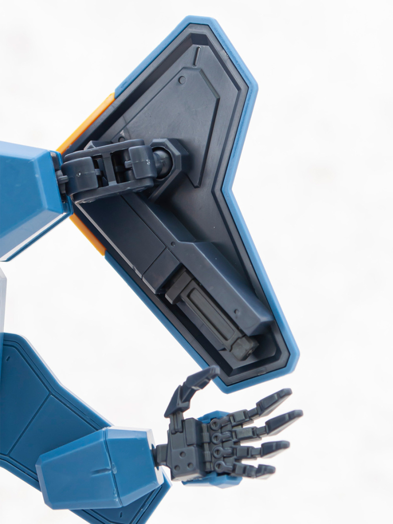 「HG 1/72 MAILeS 貞觀」以 1/72 比例再現劇中獨特的裝甲造型與關結構造,並製作出高度與本體相當的大型武裝「120mm 二連裝狙擊砲」,具備滑動式槍托零件可再現射擊姿勢,後裙甲的駐鋤可藉由替換零件方式展開,戰鬥短刀則能收納於左肩盾牌內側。
