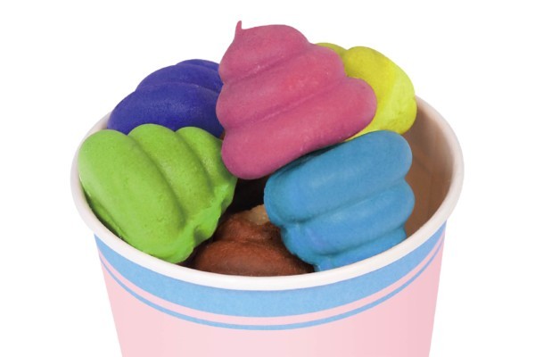 只要有雞蛋糕粉,就可以做出許多長寬各約3.5公分的小巧便便蛋糕,更可以加入食用色素來讓它們更加繽紛。