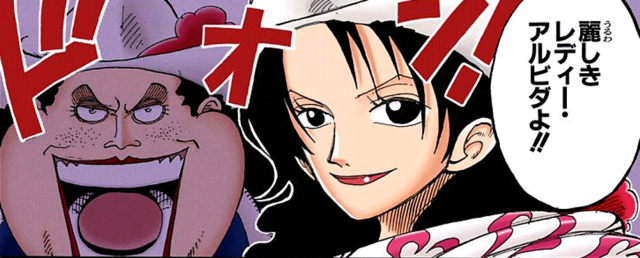 帶著形狀可怕的鐵棒到處掠奪的女海賊。魯夫最初啟航時第一個遇到的敵人。初登場時原本是個滿臉雀斑的大胖子,後來成為超人系「滑滑果實」能力者,成為一個美人,同時也得到了皮膚表面光滑,並且讓所有接觸到皮膚的物品都會滑開的能力。劇烈的變化不只粉絲驚訝外,連魯夫再見到變身成美人的亞爾麗塔都讚嘆不已,也難怪日本網友也認為後來成為美人的亞爾麗塔展現出最性感的表現,尤其是相較於初登場的樣貌 XD。