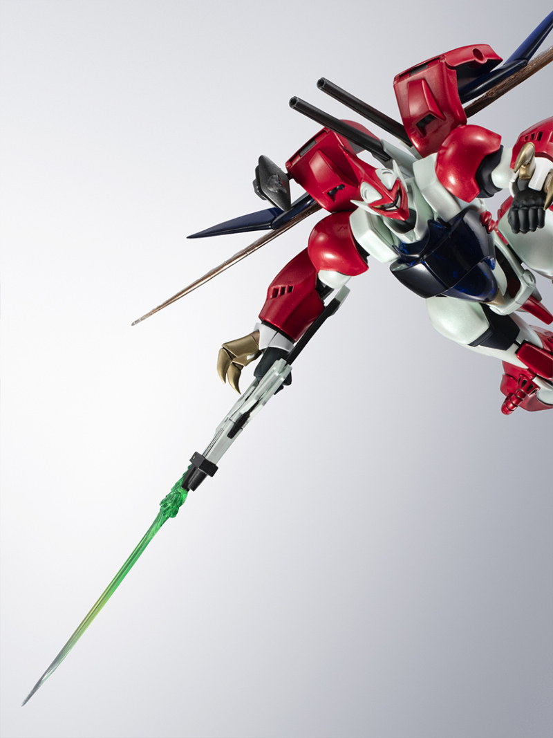 能夠配合「靈光長劍」、「靈光長劍步槍」與特效零件,把玩出帥氣的斬擊姿態,腕部的鉤爪則能替換纜繩零件再現射出場景,背部兩門靈光加農砲的基部獨立可動,能將砲口轉向前方,此外靈光飛行器變形機構也徹底再現!