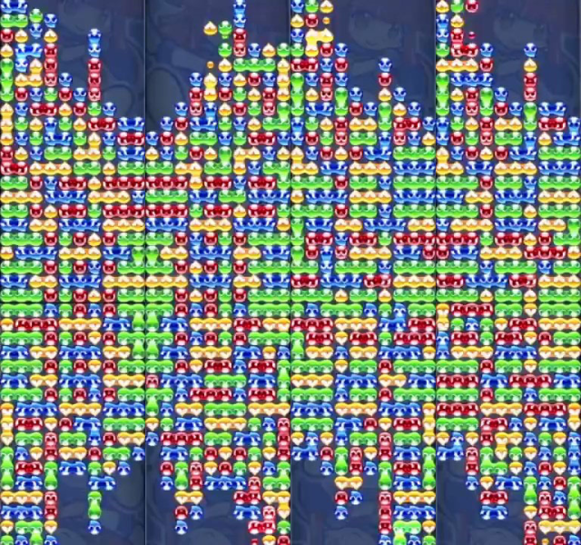 我想大家小的時候都玩過《魔法氣泡》(ぷよぷよ)吧?利用消除四個以上相同顏色的氣泡來獲取分數或是藉由消除多組氣泡來達成連段並取得大量分數,是個非常休閒有趣的益智遊戲,不過日本總會有人利用這種休閒遊戲去做些常人無法理解的事情,例如,用《魔法氣泡》來寫圓周率之類的。