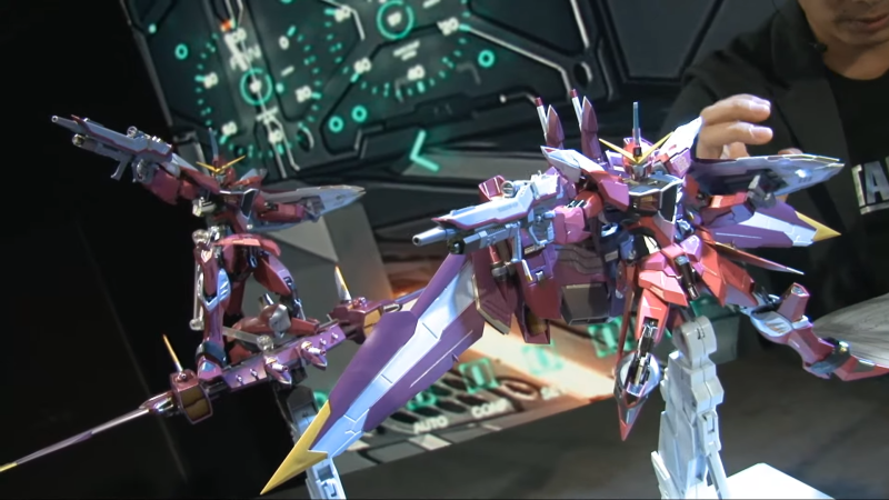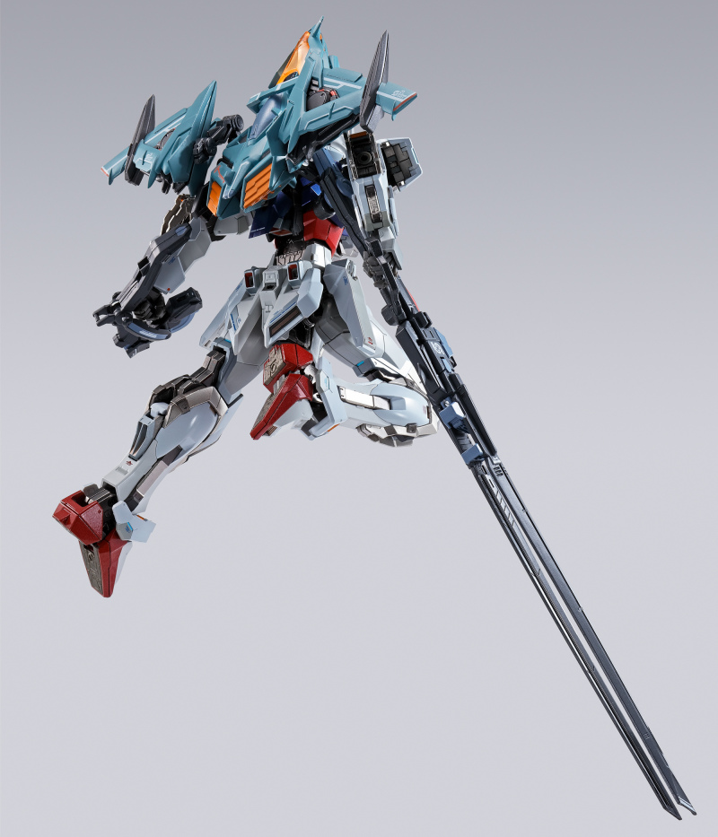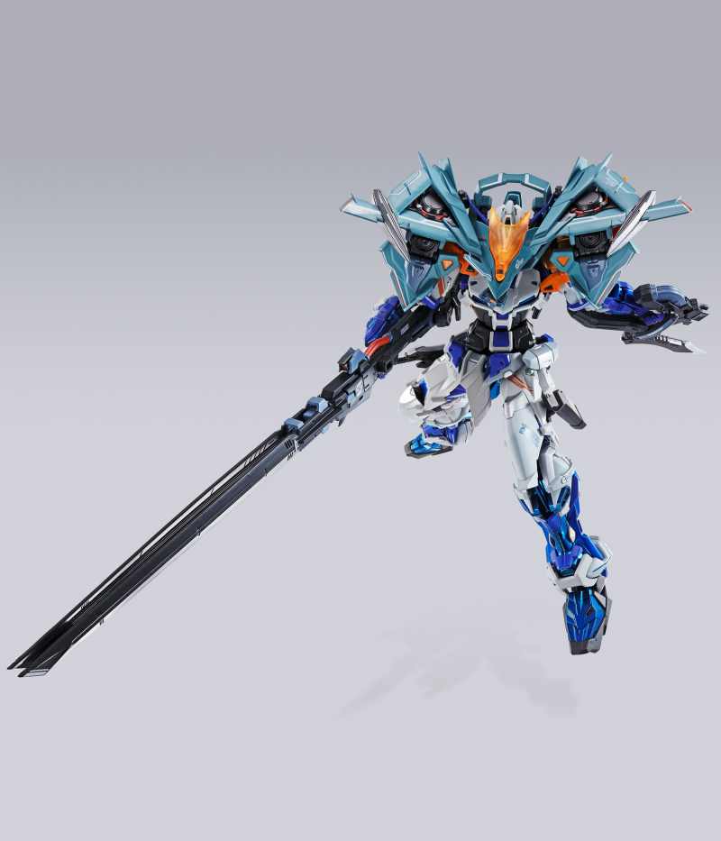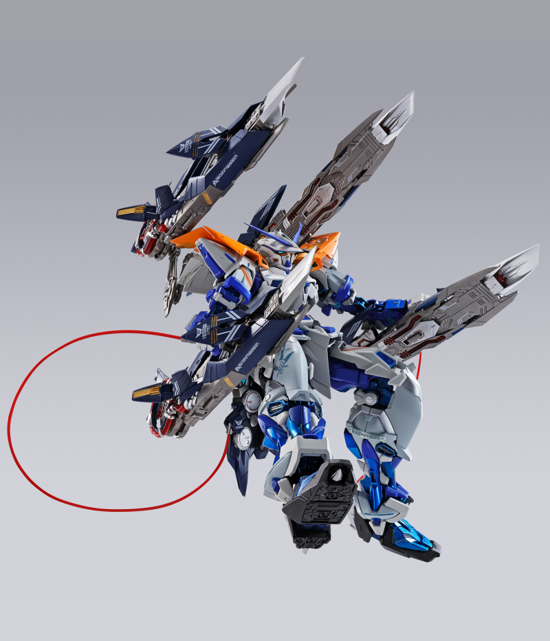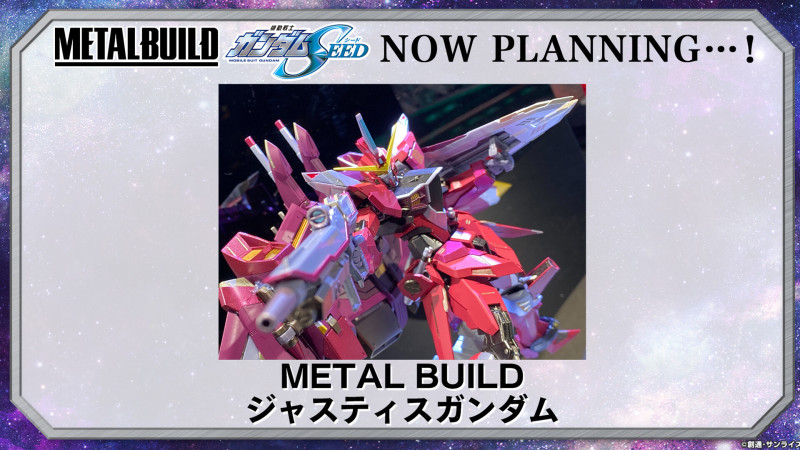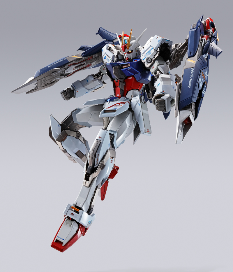 《機動戰士鋼彈SEED》中阿斯蘭.薩拉所駕駛的機體,過去已在 TAMASHII NATION 2020 展出試作品。具備精悍帥氣的裝甲造型,背部特徵的無人機武裝「Fatum-00」在 METAL BUILD 詮釋下似乎又更大型化,能夠再現於背部展開雙翼、讓正義鋼彈站立在機上兩種狀態。