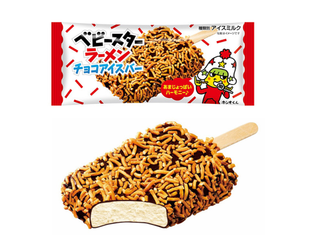 日本食品公司優雅食旗下的點心商品「模範生點心麵」,從 1948 年創立,可說是不少人的回憶之一,至今在超商量販店都可以看到。今日宣布在自家設立「ベビースターの日」 8 月 2 日時將與另一家點心品牌竹下製菓合作,推出 「點心麵巧克力冰棒」,作為今年的 「ベビースターの日」 限定商品。