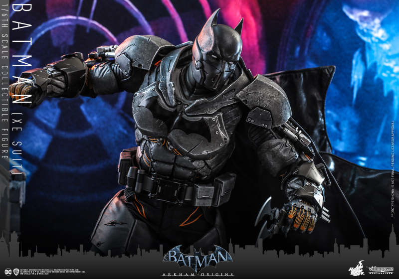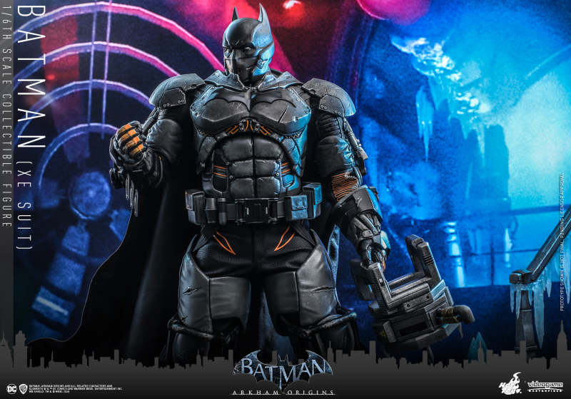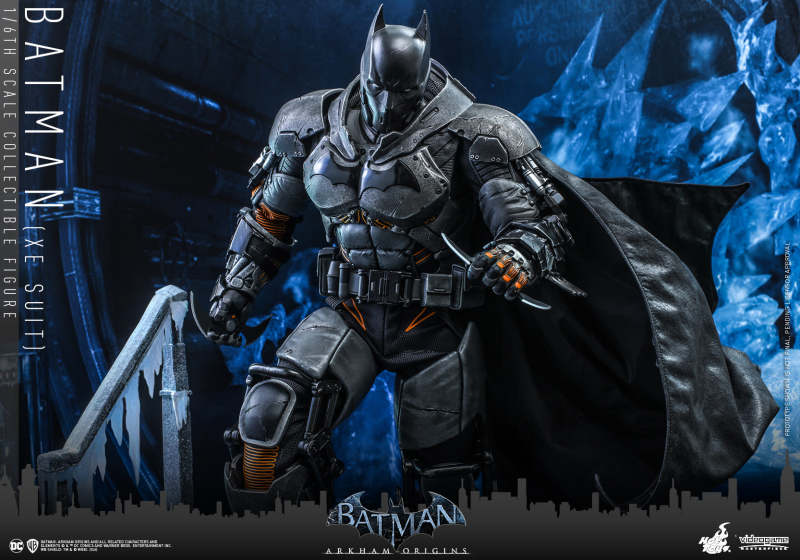 蝙蝠俠這次穿上的這套「XE Suit」是登場於《蝙蝠俠:阿卡漢起源》裡以急凍人為主要反派的 DLC「Cold, Cold Heart」之中。蝙蝠俠為了阻止企鵝人、急凍人一夥的邪惡計畫,換上這套可以適應極地嚴酷環境的「Extreme Environment Suit」;除了可以用來對付各種冰凍攻擊,裝甲也能夠產生熱能來融化冰塊障礙、救助被冰凍的人......等。