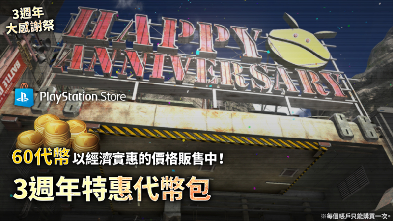 將在PlayStation™Store販售代幣60枚售價新台幣790元的優惠3週年慶特別代幣包。