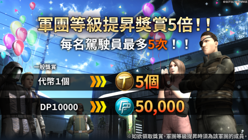 遊戲將舉辦軍團升級時獲得的報酬提升為5倍的特惠活動。