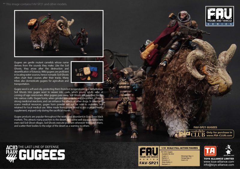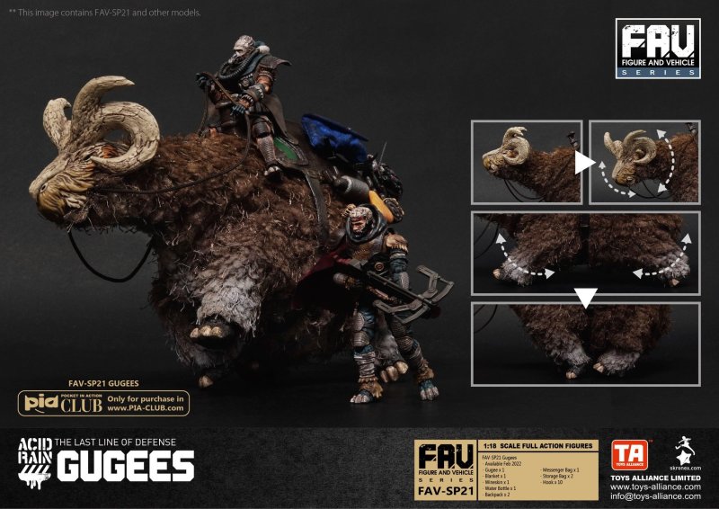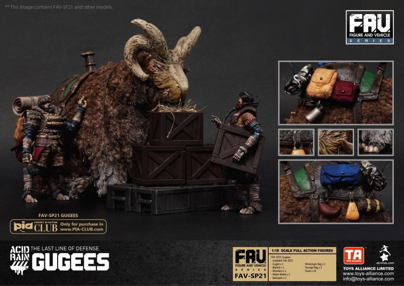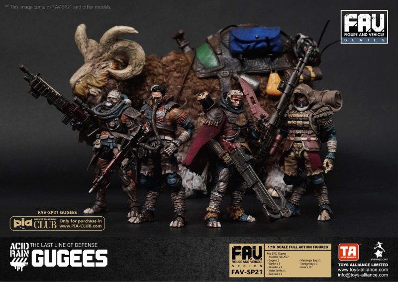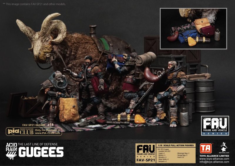 知名 3.75 吋科幻軍武主題收藏系列《酸雨戰爭》近日發表了全新的「土鬼」小隊,是四人一獸的組合,本篇將帶來編號 FAV-SP21 的動物角色「咕嘰」(Gugees)1/18 比例可動作品!預計 2022 年 2 月發貨。