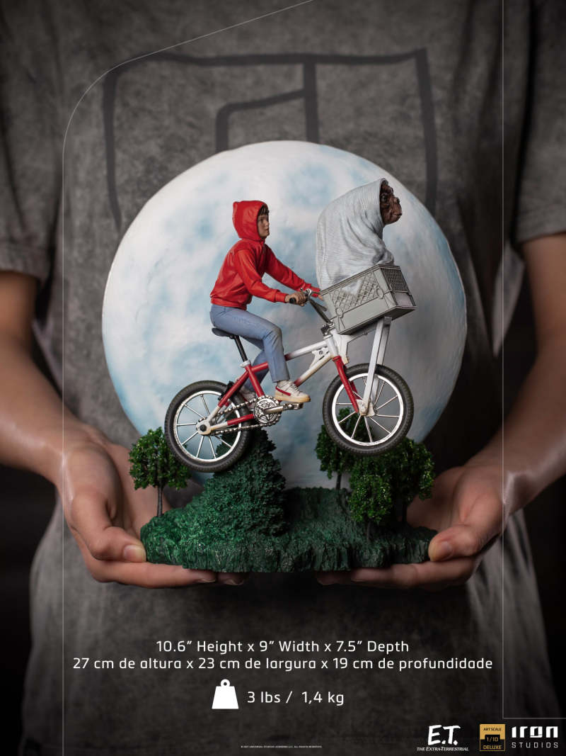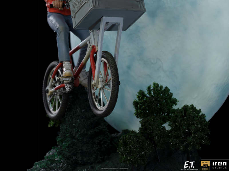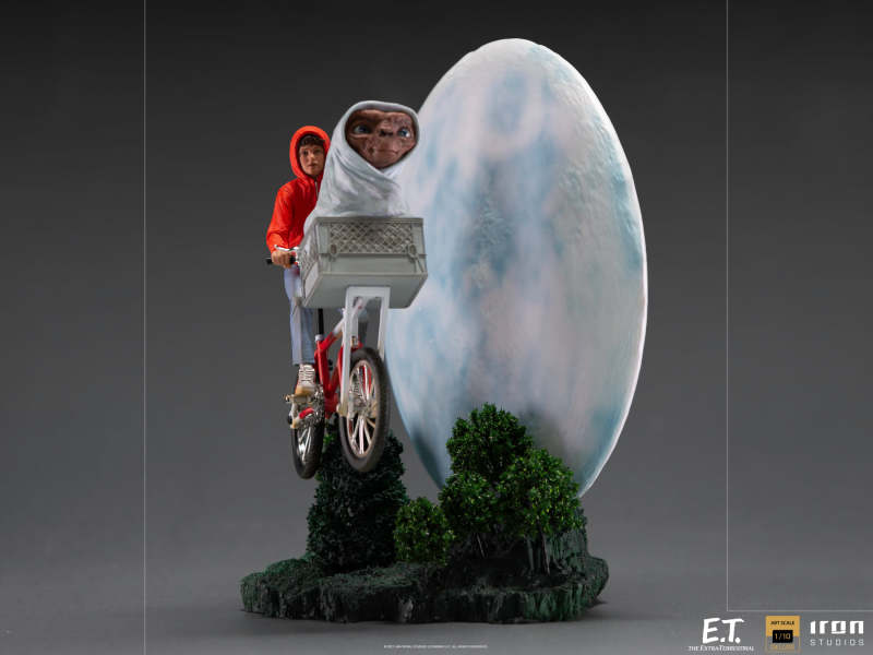 本作高約 24 公分,以劇中埃利奧特騎著腳踏車跟 E.T. 一起飛上天的名場面為題製作,重現了裹著布躲在置物籃的 E.T、身穿搶眼紅帽 T 的埃利奧特,與那台紅白相間的腳踏車,E.T. 的面部輪廓細緻地刻畫出來,炯炯有神的雙眼看起來超可愛!底座則是打造出樹林場景,而在豪華版中更是直接追加了一個超大的月亮背景,超逼人!