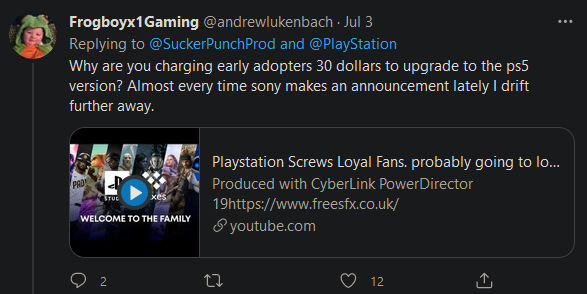 在不滿的玩家中掀起聲浪,一位玩家表示「為何最早入坑的玩家還要收取費用來升級?最近的SONY發布新公告時,都讓我越難以支持他們了。」