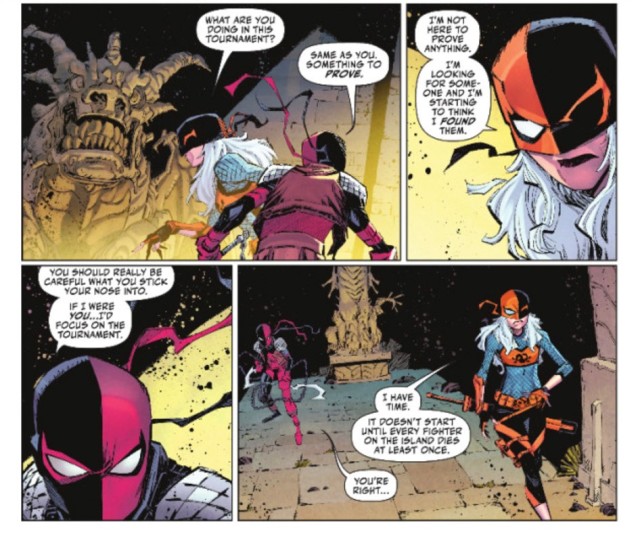 過於自信的達米安很快就成為了第一個犧牲者,但他也很快就贏得了一些戰鬥。從那時起,島上幾乎各個角落都開始了致命的戰鬥,而最後的生存者是喪鐘的女兒——「掠奪者」羅絲威爾森(Rose Wilson)。更令人意外的是,羅絲似乎有著特別的原因,在比賽的過程中非常在乎達米安的安全。
