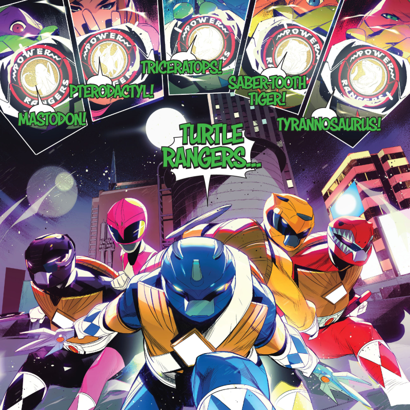 由 Hasbro、IDW、Nickelodeon、BOOM! Studios 多方攜手,讓《金剛戰士》、《忍者龜》兩大 IP 攜手共演的漫畫作品《MMPP – TMNT》,敘述五位金剛戰士攜手神龜四兄弟,共同對抗大反派「許瑞德」,以及找出「大明」背叛的原因;本次的可動人偶則是根據漫畫第 4 期中、忍者龜們變身為金剛戰士的造型製作,化身為黃衣戰士的「米開朗基羅」再現了特色的頭盔與超亮眼戰衣,結合雙節棍與匕首的武器也考究地還原,能掛在腰際也可以搭配特效件手持戰鬥!
