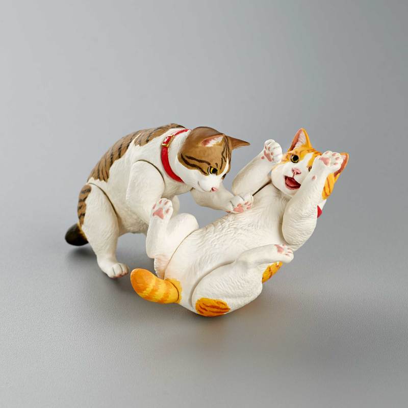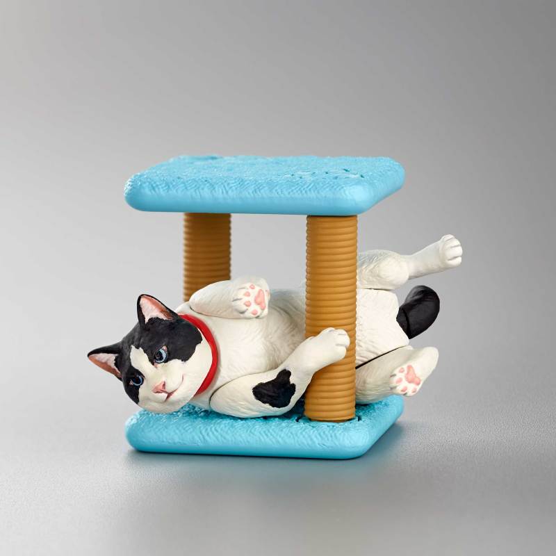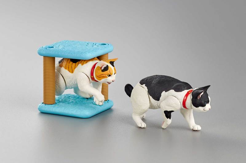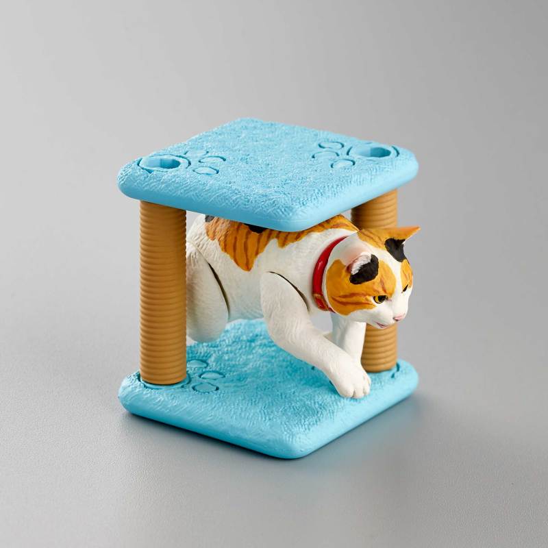 本作是由海洋堂首席動物原型師松村忍(松村しのぶ)擔任原型製作,在約 6 公分的尺寸裡將常見的日本貓花色在線條圓潤的體型上呈現出來,並刻畫出細緻的毛皮質感,利用設置在脖子、四肢、尾巴的可動機構,就可以讓貓咪呈現出生動的行走、玩耍......等姿態,更讚的是,除了貓咪本體之外還有附上給喵喵玩耍的組裝式貓塔零件,轉越多組越高,好想要整套收集呀!