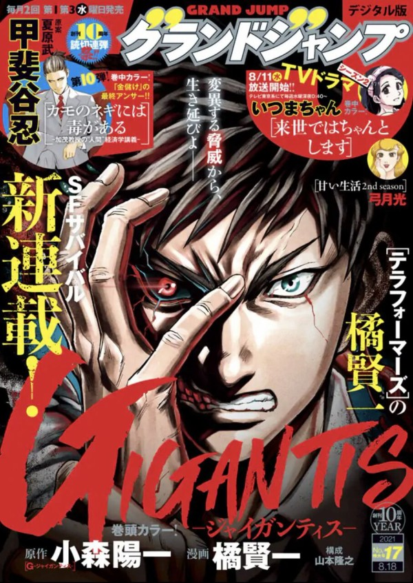 於今日 8 月 4 日發售的雙週刊青年漫畫《Grand Jump》上宣布了擔任《火星任務》作畫的橘賢一與新合作夥伴原作小森陽一、構成山本隆之合作推出了新連載《GIGANTIS-ジャイガンティス-》。