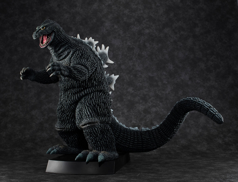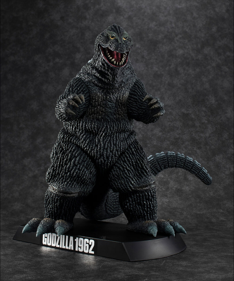 「UA Monsters 哥吉拉(1962)」高約 30 公分,細緻地再現了當時拍攝用的哥吉拉戲服造型,尤其是有著一雙上吊大眼、類似爬蟲類的頭部,正面看起來十分可愛、滑稽,而粗壯的雙腿、厚實的尾巴,為整體帶來了壓倒性的存在感!凹凸不平的粗糙皮膚、銳利的爪子,以及乳白色的背鰭......等外觀特色也都考究地製作。