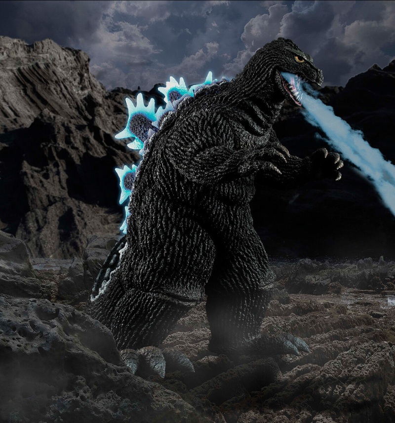 本作還搭載了超讚的聲光功能,只要撥動底座的開關到「模式1」的位置,就可以讓這尊哥吉拉的背鰭從原先的乳白色變成散發藍色光芒的狀態,而在「模式2」中則是會啟動哥吉拉魄力十足的標誌性咆哮聲,而在口內、背鰭部分也會呈現出閃爍燈效,極具收藏價值!不過,真的好想拿根樹枝往牠嘴裡督啊XD~