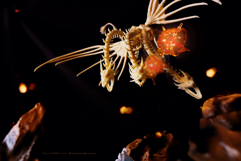 以造型來說真的不錯,骨頭更突出了基多拉凶狠的感覺。而且可動度莫明的也不差。