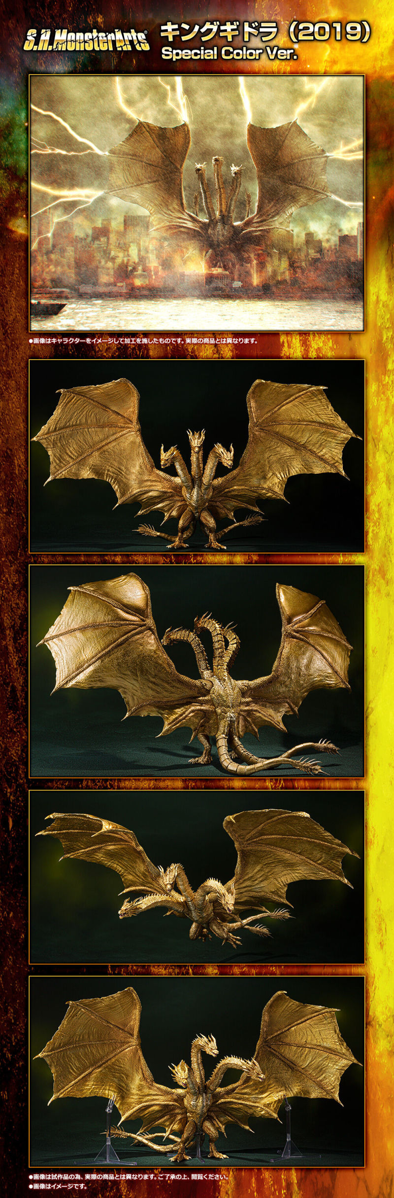 由日本 BANDAI SPIRITS 公司收藏事業部 TAMASHII NATIONS 發行,結合精緻怪獸造型與出色可動技術的『S.H.MonsterArts』系列今(05)日發表了出自《哥吉拉:怪獸之王》的最新商品「王者基多拉(2019) Special Color Ver.」預計於 2022 年 01 月發售的消息。