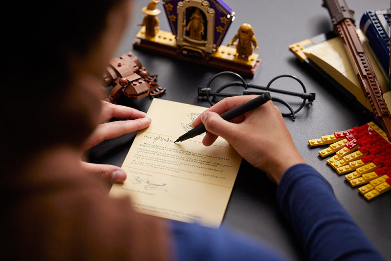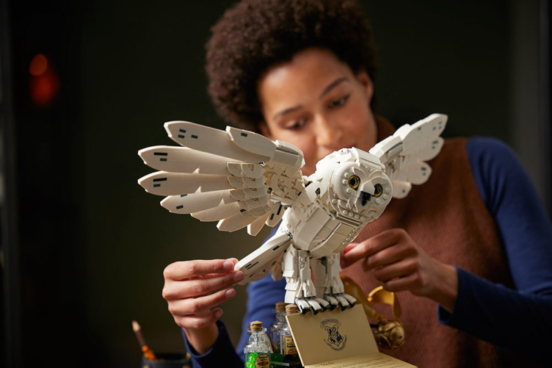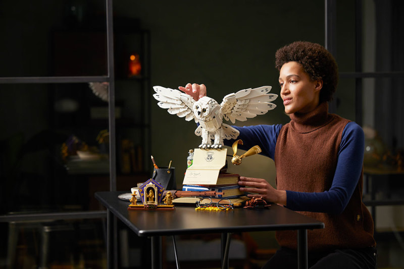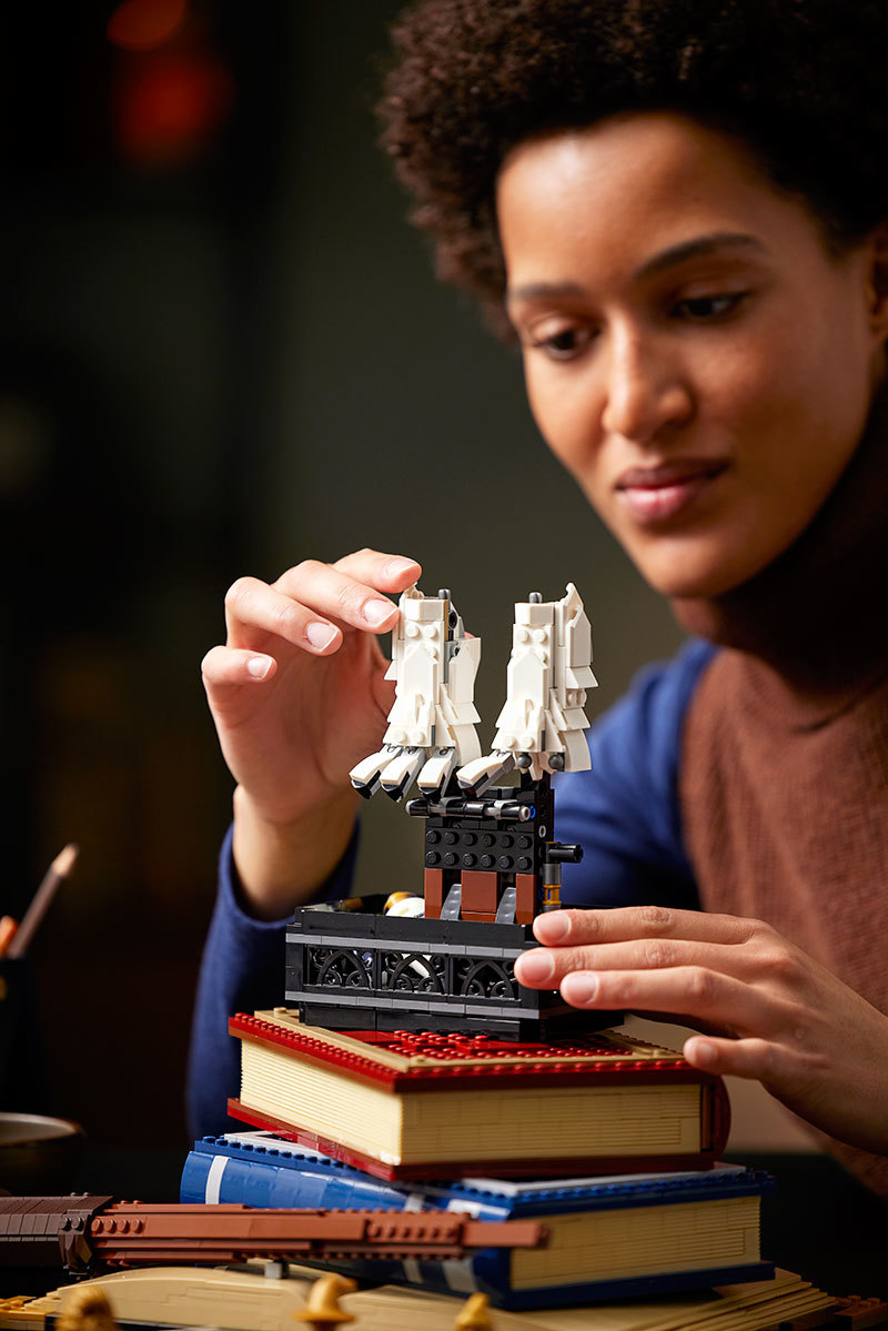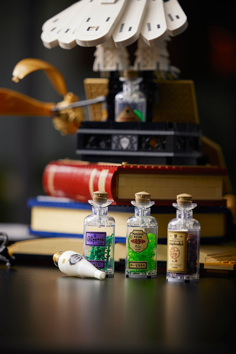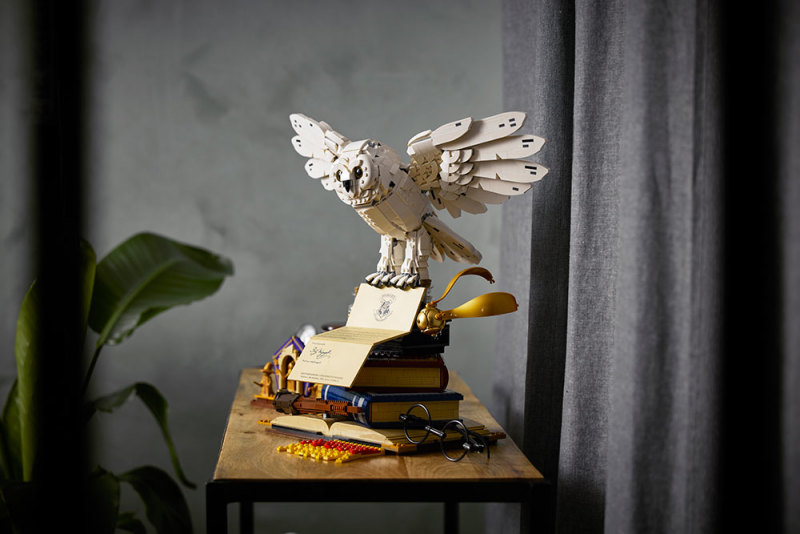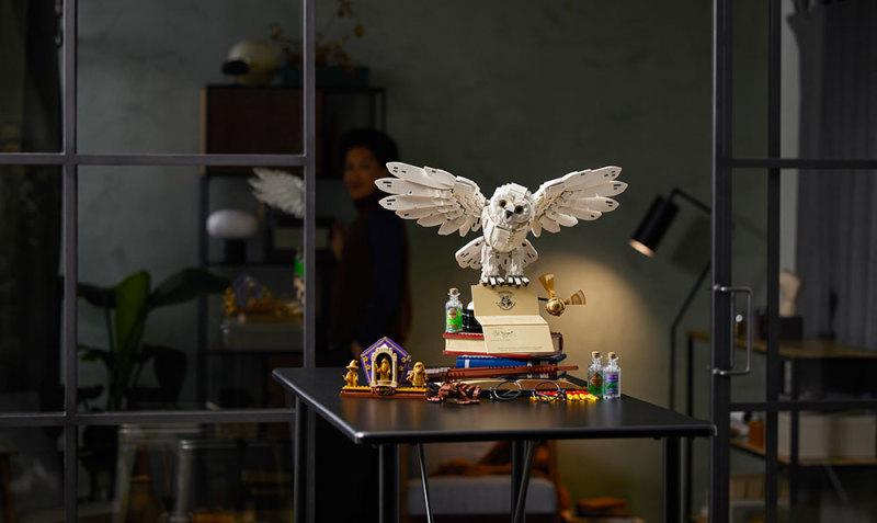 本作是將電影中我們看到的魔法學校-霍格華茲裡的標誌性元素做一個大集合,並且拼成一個展示性極強的模型,零件數不少呢來到 3010 件,組裝完成之後高約 44 公分,寬度則有 50 公分,最搶眼的就是帶著霍格華茲邀請函的嘿美(Hedwig)了,另外還有哈利波特的眼鏡、魔杖、好幾罐的魔藥、金探子、巧克力蛙、湯姆·瑞斗的日記......等經典的道具、魔法物品,超酷!